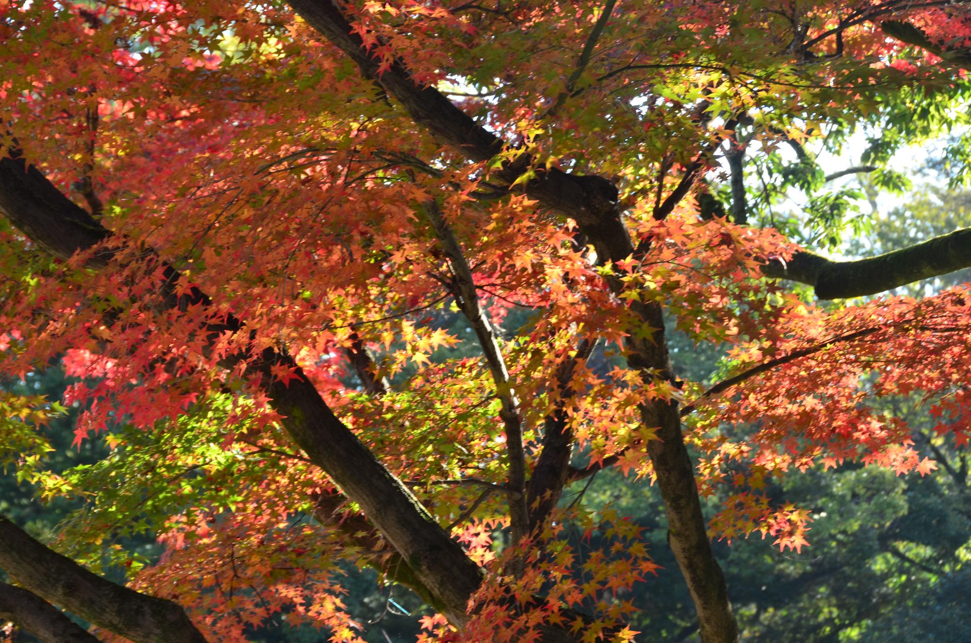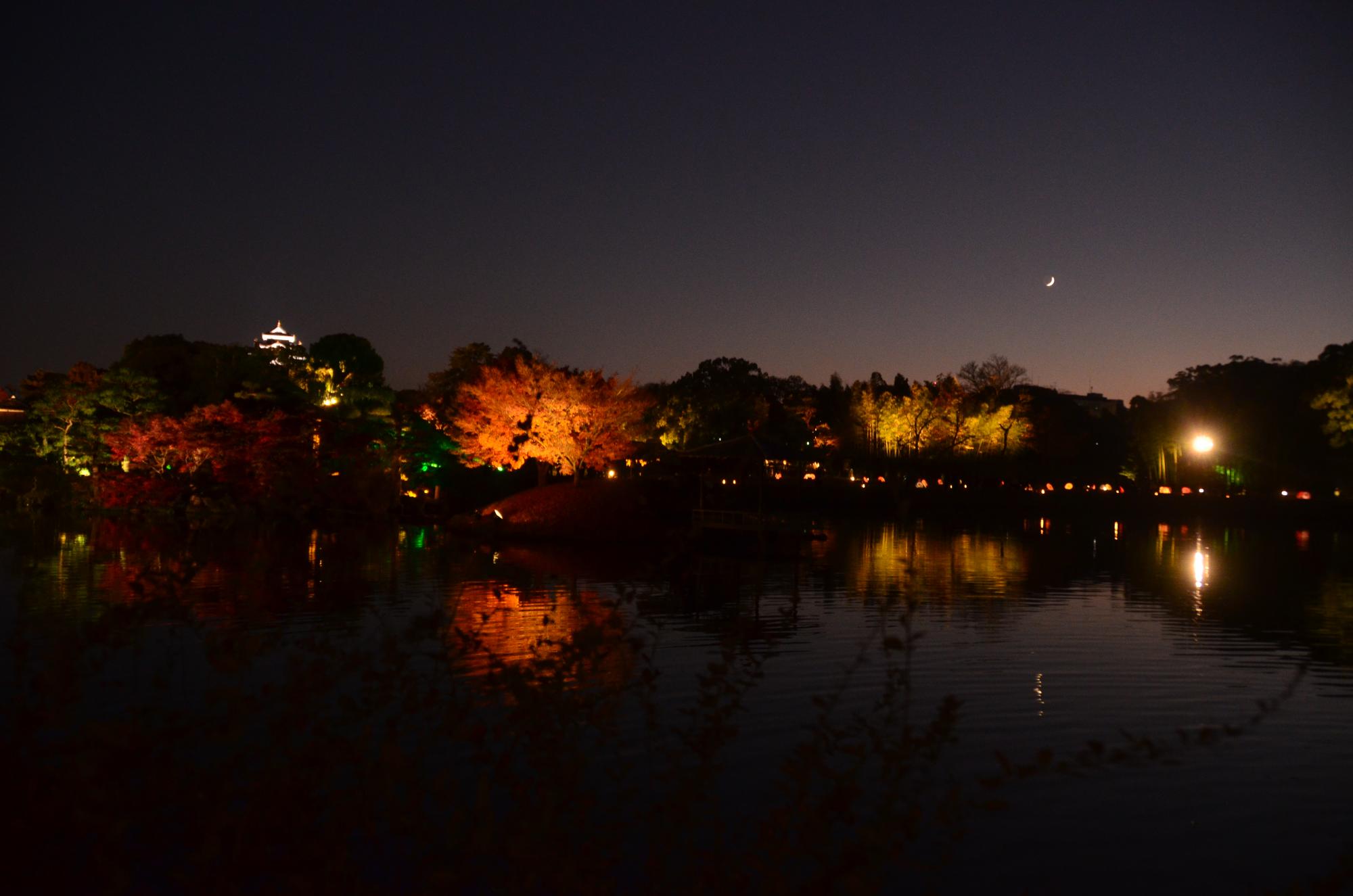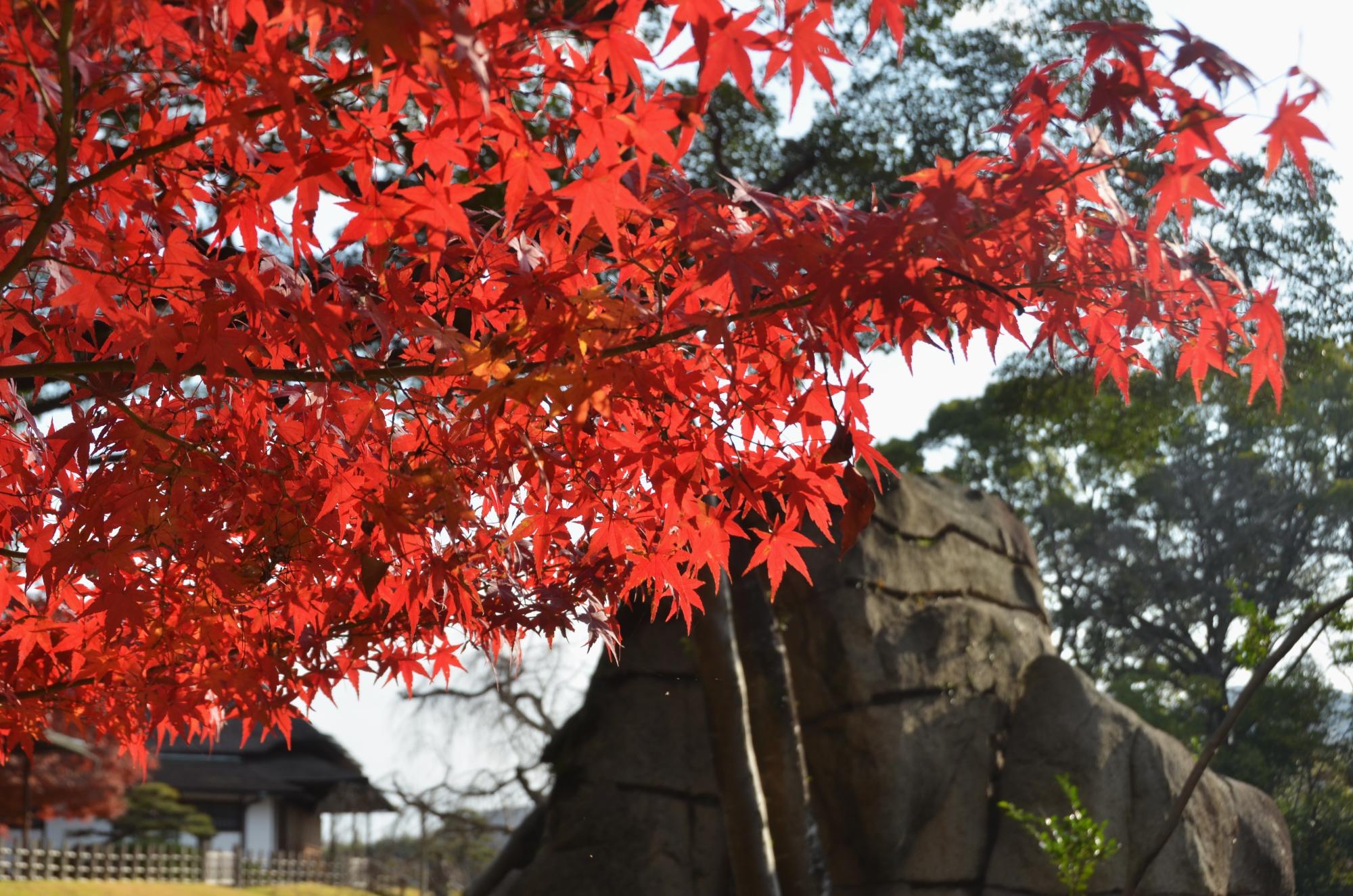 栄唱橋の奥に「ヤエベニシダレ」、手前は「ドウダンツツジ」です。