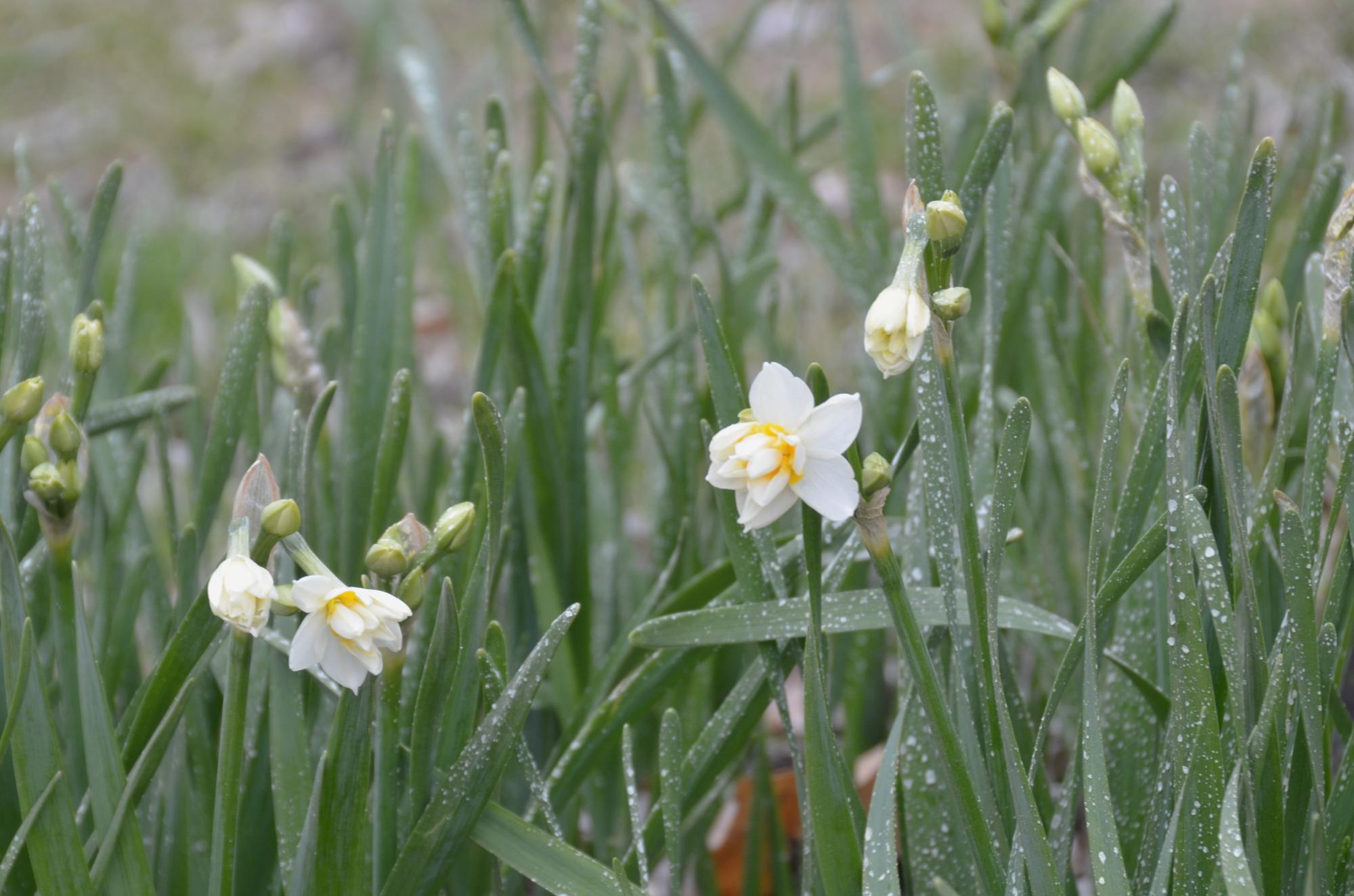 梅林に咲き始めたスイセンの花。